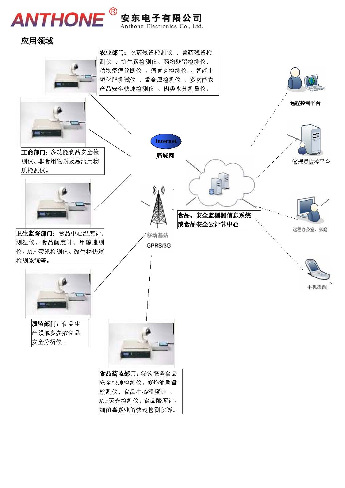 ANTHONE物聯(lián)食品安全裝置與系統(tǒng)原理: 通過物聯(lián)網(wǎng)技術(shù),對食品的各項關(guān)鍵數(shù)據(jù)進(jìn)行采集、存儲,實現(xiàn)數(shù)據(jù)分析和智能處理,形成完整的數(shù)據(jù)庫,可提供一致、高效的數(shù)據(jù)查詢、追溯機(jī)制。實現(xiàn)市場動態(tài)控制,食品安全動態(tài)控制,構(gòu)建信息監(jiān)測和通報網(wǎng)絡(luò)體系。