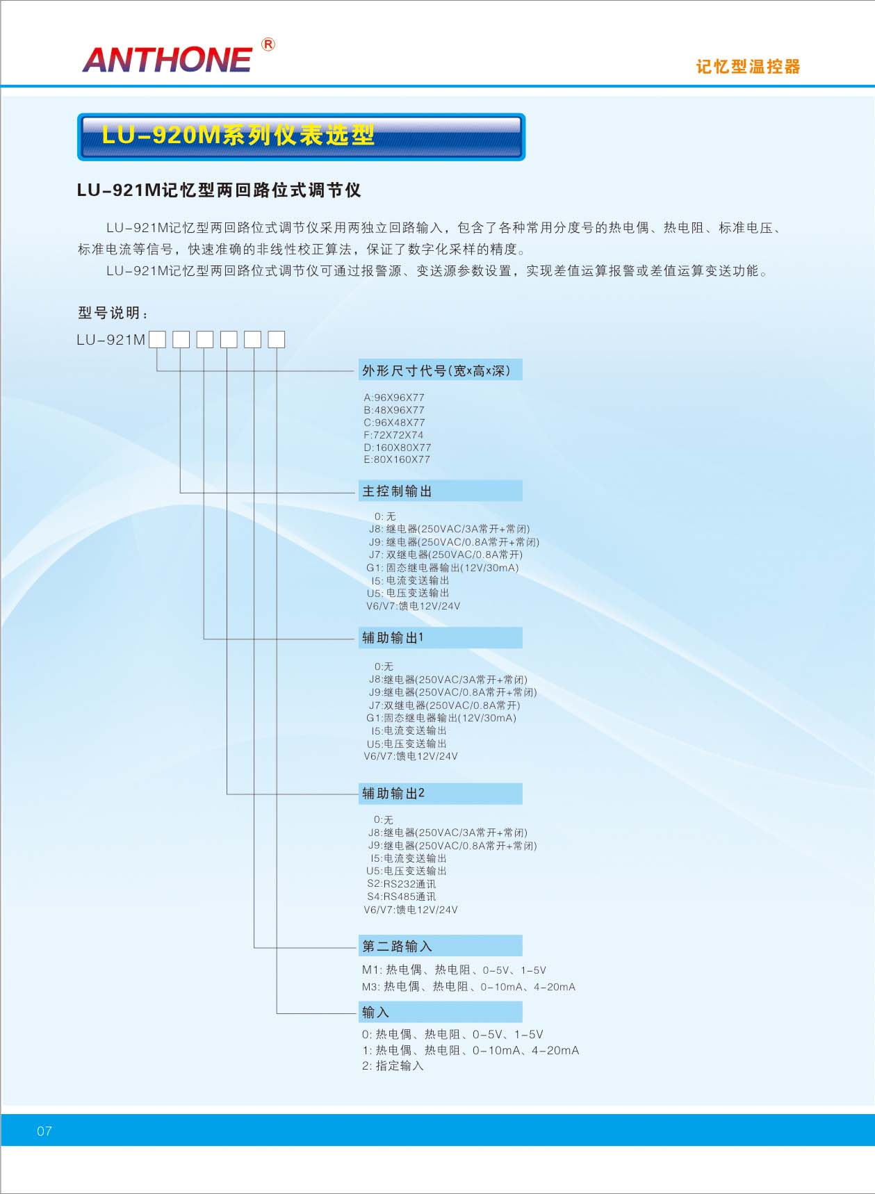 | 輸入規(guī)格:K,S,B,T,E,J,Wre325,N,Pt100,Cu50,Cu100,0-10mA,4-20mA,0-5V,1-5V | |||