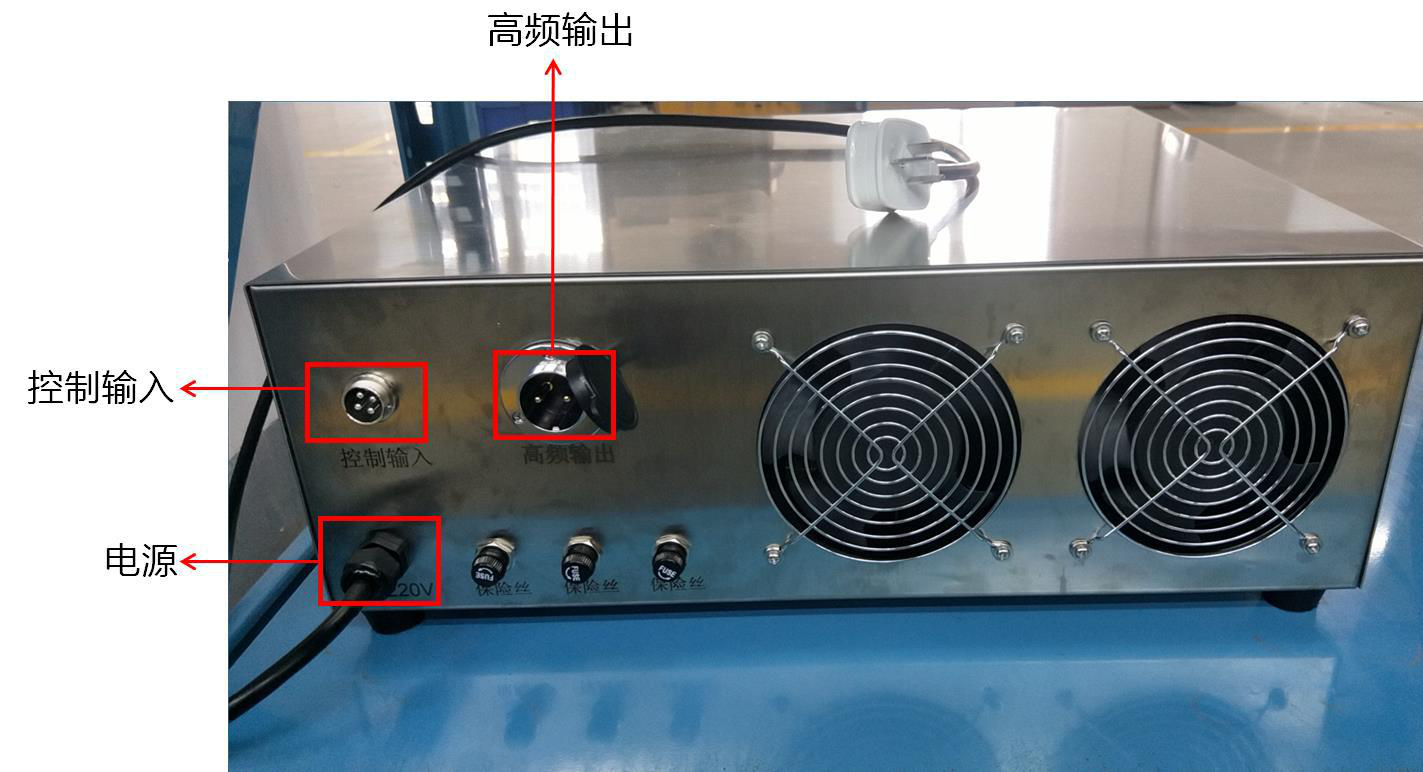 2、高頻輸出:與超聲波換能器插頭連接;
