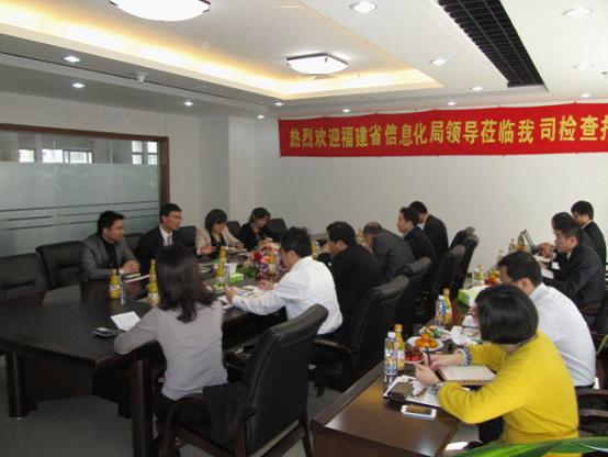2013年3月1日上午,福建省信息化局領(lǐng)導(dǎo)、廈門市信息化局領(lǐng)導(dǎo)蒞臨我司視察指導(dǎo),在工作人員的陪同下,參觀了公司的產(chǎn)品展覽廳和榮譽(yù)榜,并召開了“福建省信息化局視察指導(dǎo)工作會(huì)議”。