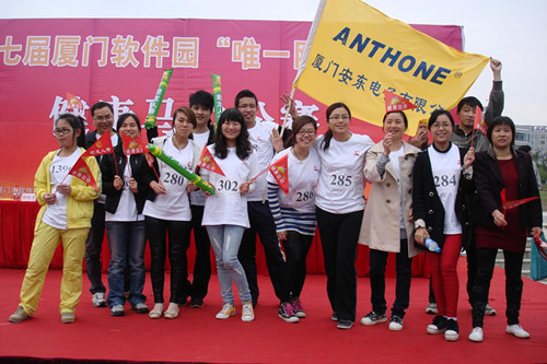 2013-04-12 一年一度的軟件園馬拉松賽開(kāi)賽了!在這春暖花開(kāi)的四月,第七屆“唯一網(wǎng)絡(luò)”杯廈門(mén)軟件園健康馬拉松賽在軟件園二期拉開(kāi)帷幕,主題為“激情馬拉松、魅力軟件園”, 我司有30多名運(yùn)動(dòng)健兒報(bào)名參加比賽,口號(hào)是“安東、安東,勇奪先鋒”