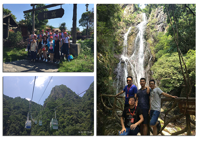一路延著溪流下山,溪水清澈見底, 魚兒們在水中悠閑自得地游來游去,此時扔下一塊面包屑,不可思議的事情發(fā)生了,上千條小魚像是接到通知一樣一擁而上搶食,上游和下游的魚兒都聚在一起形成圓圈,速度非常之快。延途欣賞著美景,不得不感嘆大自然的鬼斧神工。4個小時的步行,到了五彩飛索,全長1100米,垂直高差360米,坐在纜車上,俯看山谷的美景,別有一番風味。20分鐘的空中之旅對于恐高的人卻是一種心理上的挑戰(zhàn)。到達好漢酒樓吃完午餐,就踏上了回家的路程。