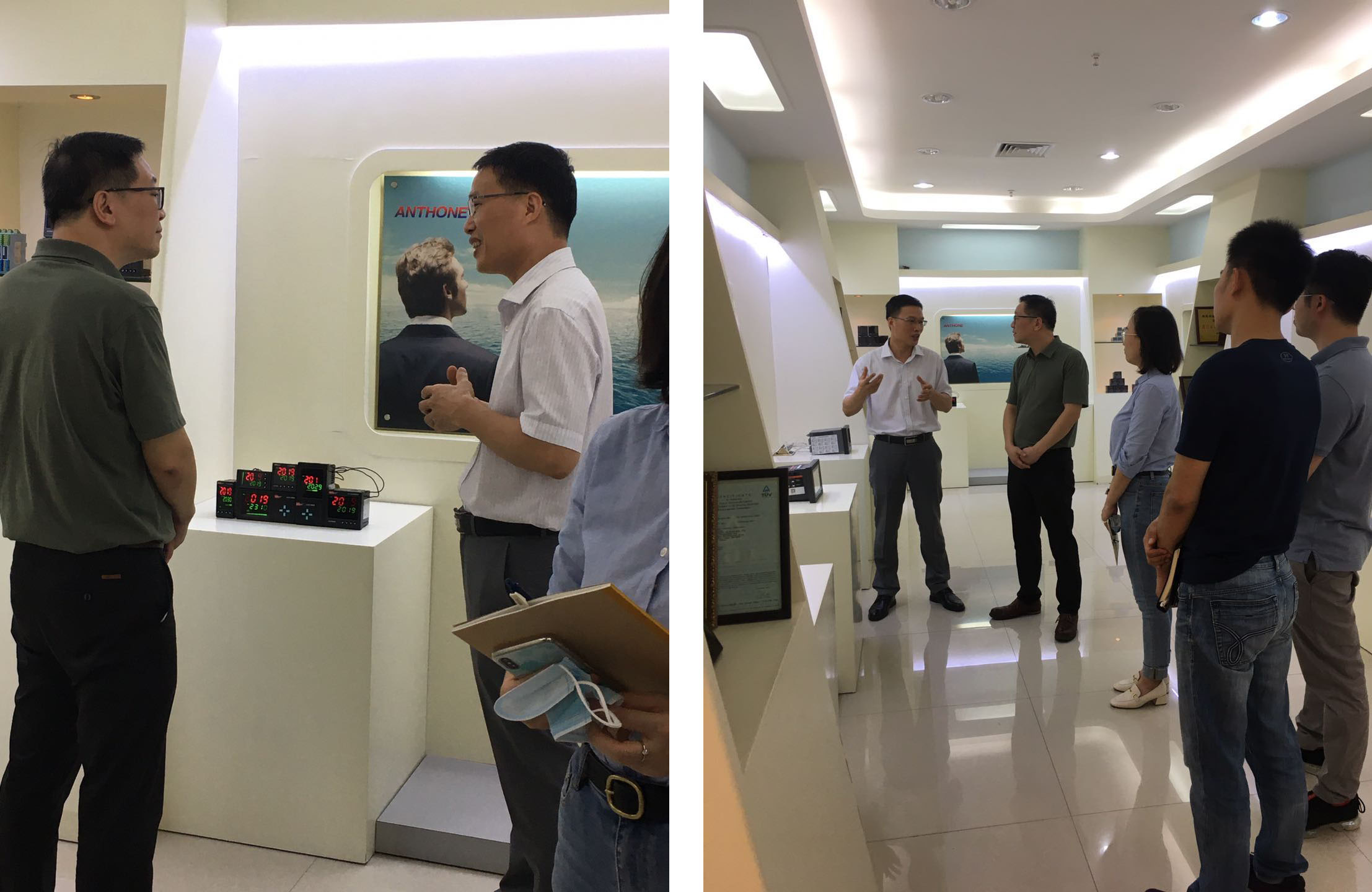 首先,廈門安東電子有限公司總經理肖國專先生陪同領導們參觀了產品展廳,先介紹了智能電力監(jiān)測儀的功能及用途,應用于廈門地鐵項目及樓宇建筑項目的情況。接著介紹了觸摸屏無紙記錄儀,主要用于工業(yè)行業(yè)的溫度、壓力測量記錄,并介紹了最新研發(fā)的與互聯網結合的模式,可對產品進行遠程維護,特別是疫情期間可以不出門就能解決問題,領導們給予極大的贊許。隨后,介紹了溫控表和壓力變送器產品,重點提到熔噴布生產設備上起到的作用,結合時事需求,不斷研發(fā)與時俱進,研發(fā)就是企業(yè)的第一生命力,得到領導們的認可。